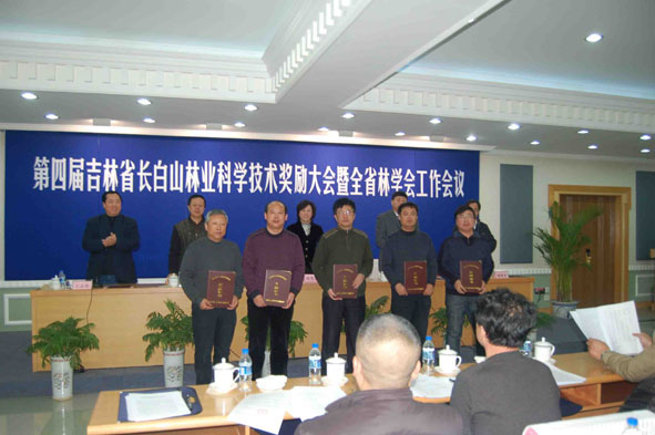 会议对第四届长白山林业科技奖获奖项目给予奖励,授予《吉林省珍稀野生植物受威胁程度评价及<吉林省重点保护野生植物名录》的编制>项目为一等奖,奖励人民币6000元;授予《难燃密度板技术研究》等7个项目为二等奖,奖励人民币4000元;授予《树木花卉新品种繁育示范》等11个项目为三等奖,奖励人民币2000元。对54个全省林学会工作先进集体、23名优秀林学会秘书长、787名先进林学会工作者进行了表彰。会议号召以获奖的科技工作者为榜样,学习他们顽强拼搏、奋力开拓、勇于探索、甘于奉献的崇高精神,倡勤崇实,力克时艰,大力推动创新,勇攀科技高峰,为发展现代林业,建设生态文明,实现林业经济强省的宏伟目标而努力奋斗。